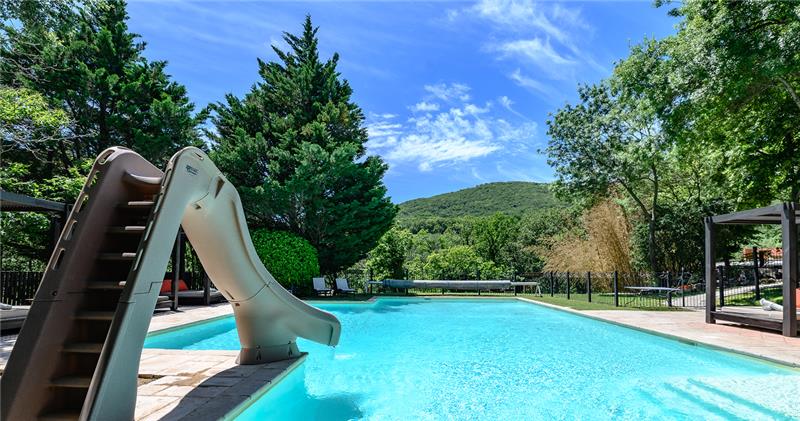 The heated swimming pool with its slide quickly becomes the heart of the estate, a place where friendships are made in seconds and afternoons stretch deliciously long under the Mediterranean sun.
