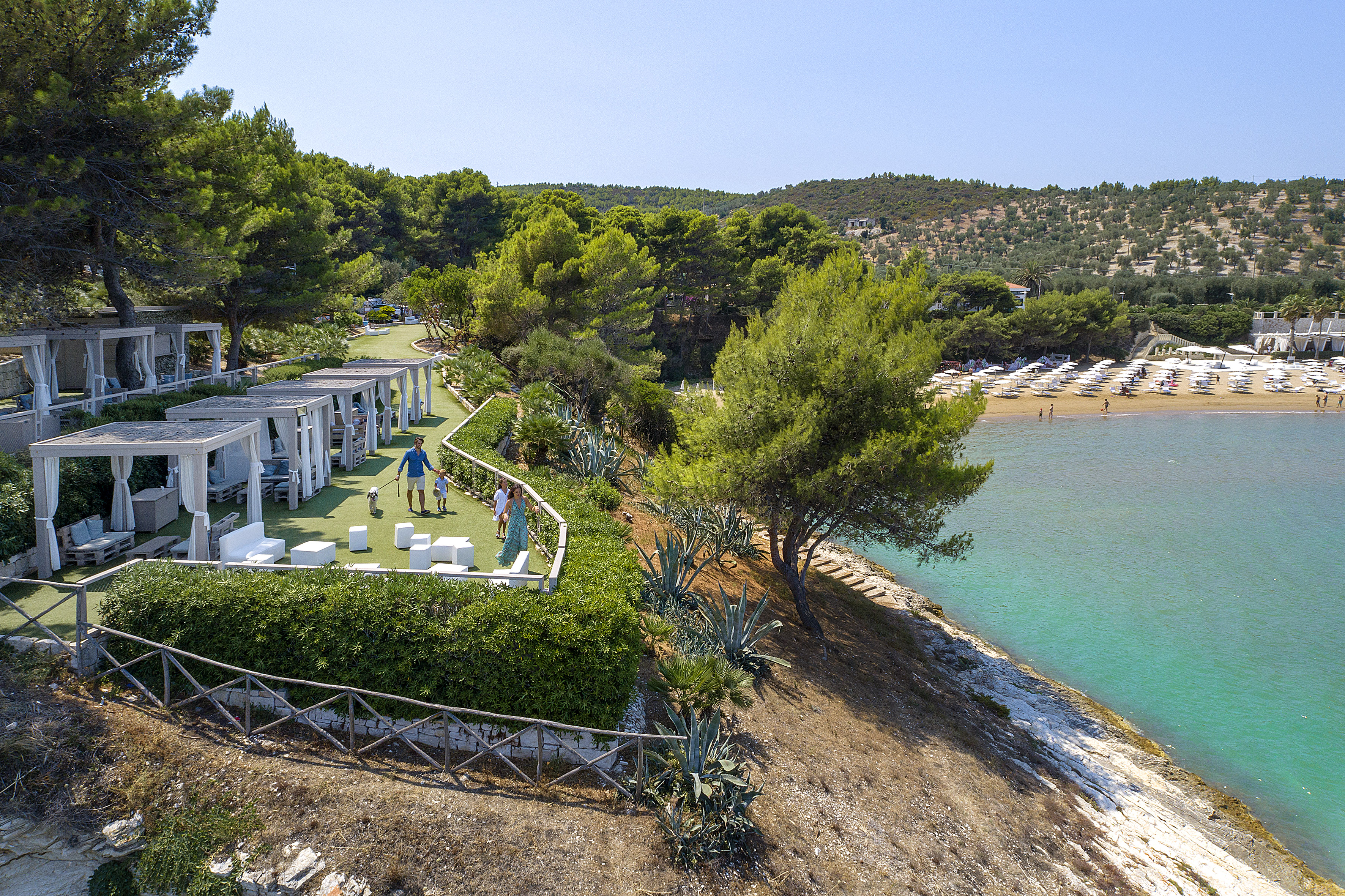Pour ceux qui recherchent un niveau encore plus élevé d'intimité et d'espace, les villas de luxe du Gattarella sont dans une catégorie à part. Situées entre la mer et la forêt de pins, à quelques mètres du bord de l'eau, ces villas récemment inaugurées ont été conçues pour offrir une liberté totale et un confort absolu. D'une capacité pouvant accueillir jusqu'à dix personnes, elles sont idéalement adaptées aux grandes familles, aux groupes multigénérationnels ou aux amis voyageant ensemble. L'accès complet au resort est inclus (plage, piscines, Gattaland et tous les équipements bien-être).